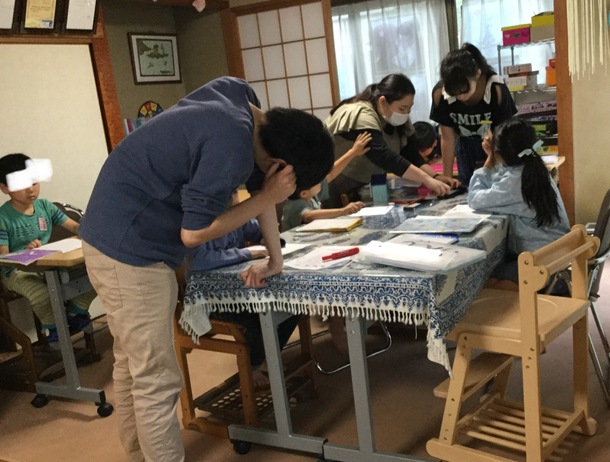 友だちからパンチやキックを受けて送迎の車に泣きながら乗ってきたS君。Bremenに着いても泣き続けて暫く車から降りてもれません。様子を見ていると、押し入れの図書室で耐えている様子。訳を聞いても「話したくない」というばかりです。小1時間もすると「押し入れで勉強する。」とノートを出してきました。周りの子も何となくそっとしてあげていました。