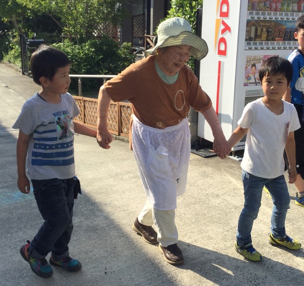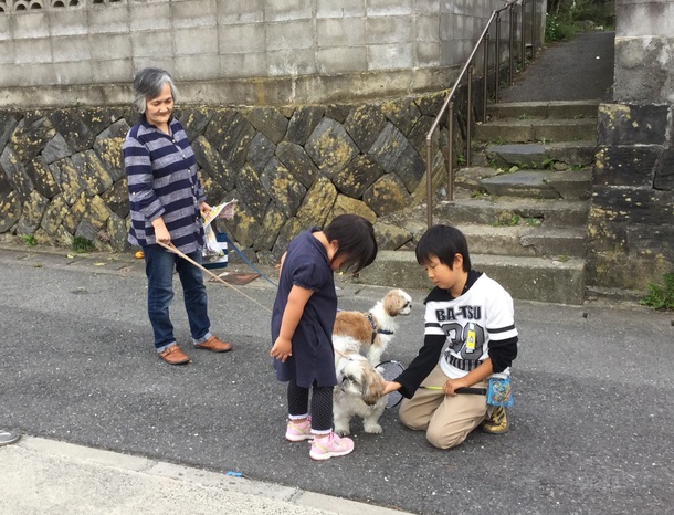 犬が通れば犬に、おばあちゃんが通ればおばあちゃんに近寄っていき、話しかけたり撫でたりします。ご近所の方々も目を細めて子ども達を見守ってくれます。