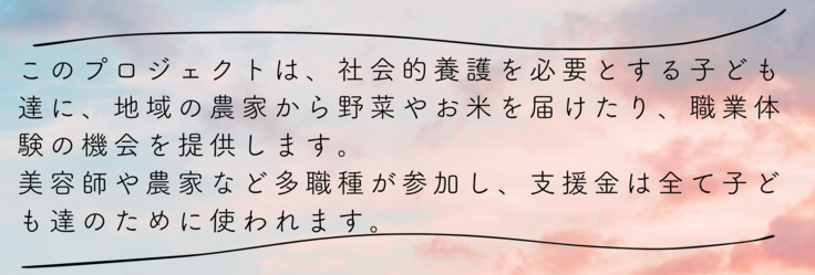 社会的養護を必要とする子どもたちの存在や、彼らが直面する困難について、まだ十分に知られていない現実があります。このプロジェクトを通じて、子どもたちの現状に関心を持っていただき、支援の輪がさらに広がるきっかけになればと願っています。