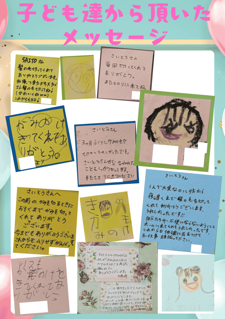 ・「教育および自己肯定感向上支援」:美容師による訪問ケアや、学用品の提供を通じて、自己肯定感や社会性の向上を図ります。定期的に美容師を派遣して子どもたちの身だしなみを整え、自己肯定感を高めるサポートを行います。
