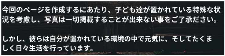 しかし、私たちの活動が継続し、多くの子どもたちの支援が可能になるためには、皆様のご協力が必要です。