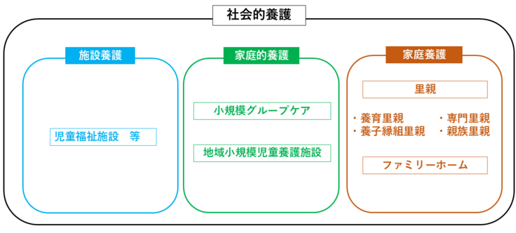 保護者のない児童や、保護者に監護させることが適当でない児童を、公的責任で社会的に養育し、保護するとともに、養育に大きな困難を抱える家庭への支援を行うことです。社会的養護は、「こどもの最善の利益のために」と「社会全体でこどもを育む」を理念として行われています。