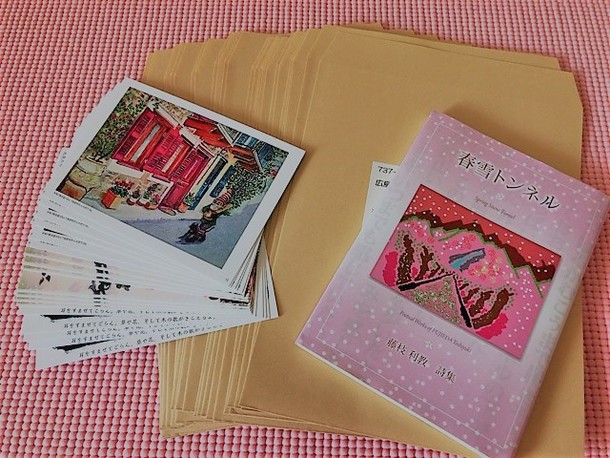 本日、リターンの品、藤枝利教さんの詩集「春雪トンネル」を「ゆうメール」にて発送致しました。