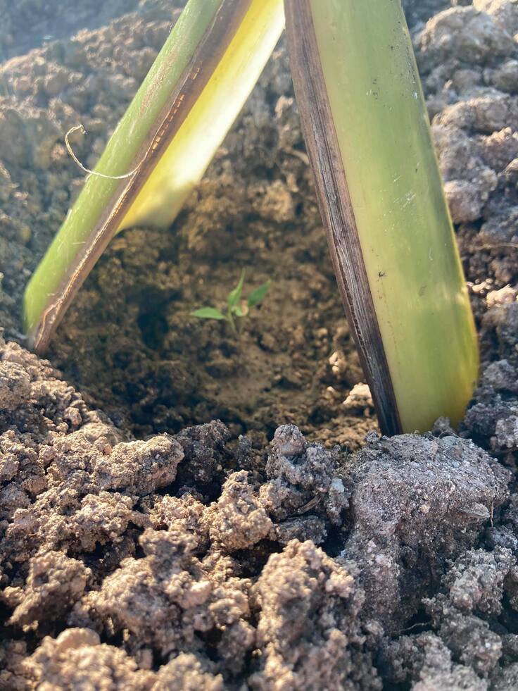 小さい芽を守るためのバナナの葉っぱ