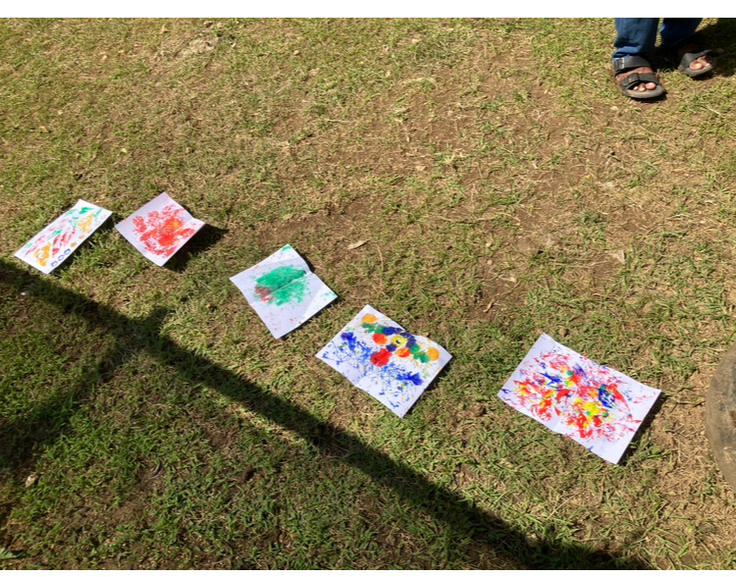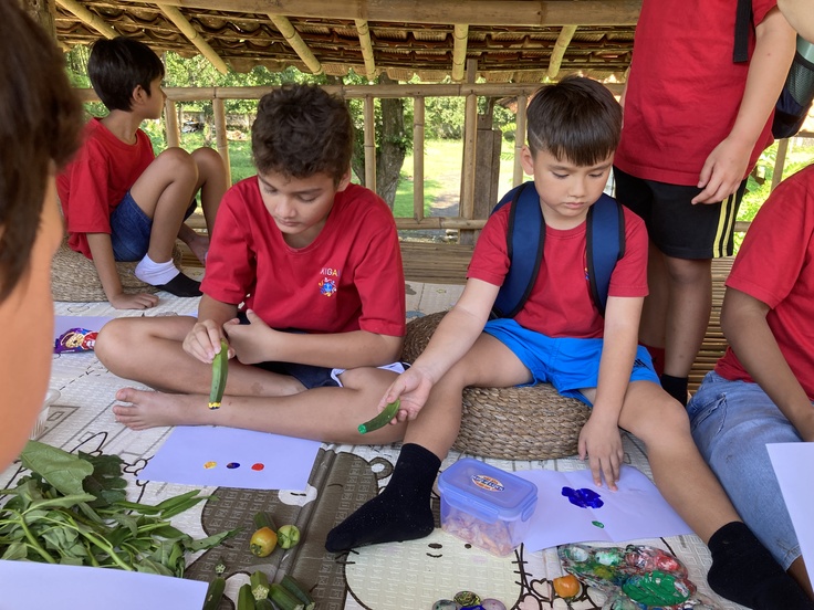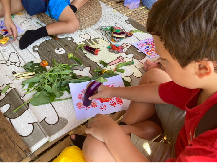 アートのクラスもやりたい、という、先生たちの希望から、好きな野菜を収穫し、水性絵の具でスタンプ遊びもしました。