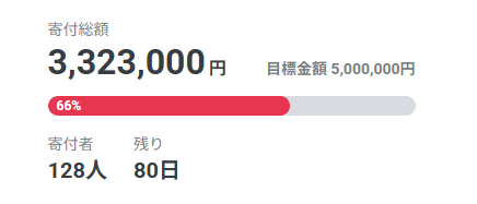 本クラウドファンディングが始まって10日が経った本日、目標金額の66%を達成することができました。