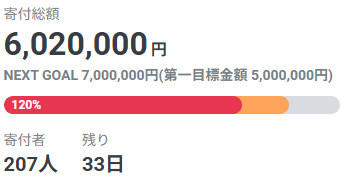 第2目標700万円へ向けて続けております本クラウドファンディングですが、