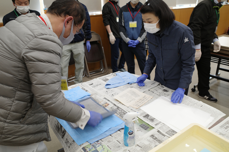 それぞれ、乾燥にあたっては専門的な知識と修復技術が必要なものがありますが、古文書や手紙、書籍等の紙資料の中には、ある程度、練習すれば誰でも上手に乾燥させることのできるものもあります。