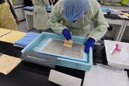 水濡れの文化遺産、特に紙資料の応急処置には大きく2つの作業があります。ひとつは乾燥であり、もうひとつはクリーニングです。