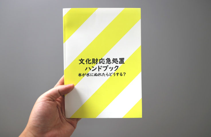本が水にぬれた場合の処置例に加え、汚損した紙資料を実際に専門家が処置する様子を掲載しています。