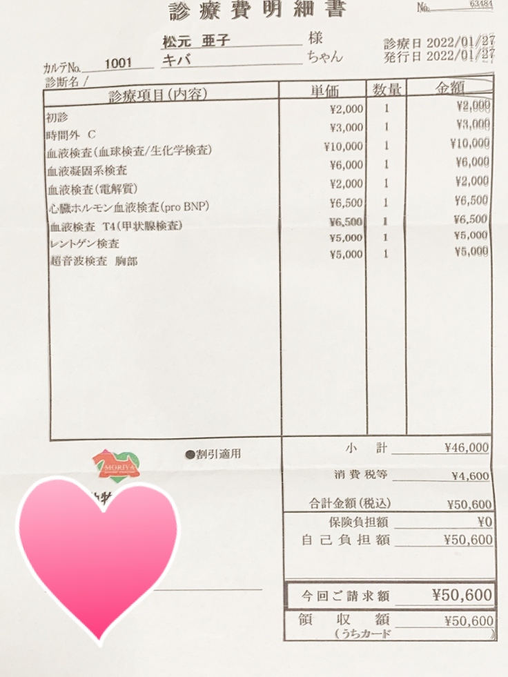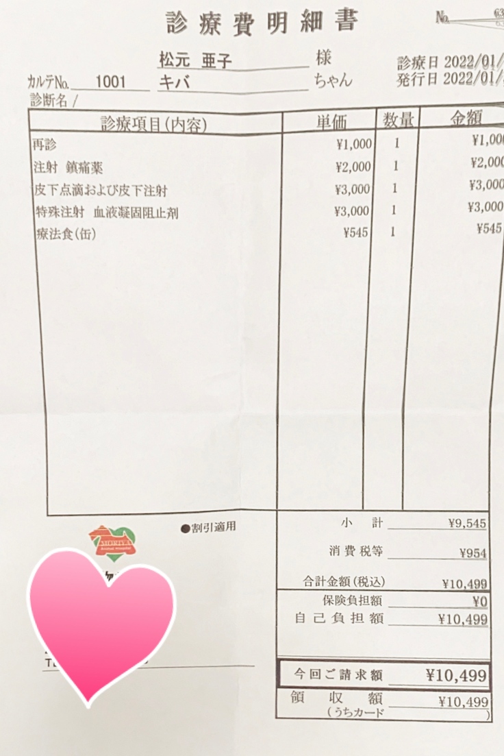 支援金は全てキバの治療費に充てます。