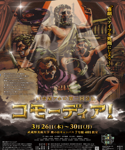 12月2日〜6日、荻窪小劇場にて上演。(チケット料金等詳細未定。9月末決定予定。)代表 山口翔平(武蔵野美術大学卒) 現在のメンバーは12名で、武蔵野美術大学生とその卒業生で構成されています。