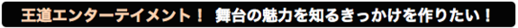 第三回公演を成功させ、質の高い王道エンターテイメントを提供したい!!