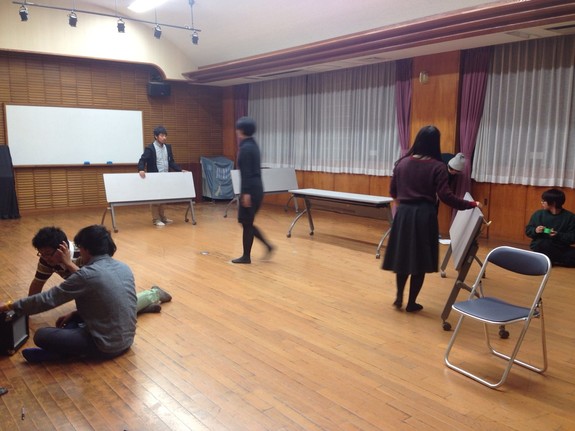 第一回内部通しを行いました。音楽や照明や舞台美術は仮のものですが全シーンさらいました。なんとか脚本も全てできあがり、役者も基本的にセリフを全て覚えられている状態です。