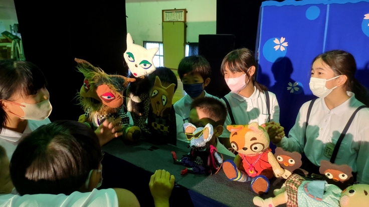 終演後に登場した人形たちを見たり、実際に動かす体験もでき子どもたちは興味が尽きない様子でした。