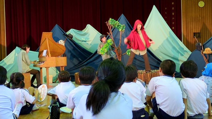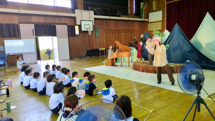 今年度のクラウドファンディングによる小規模小学校支援事業9校目は、全校児童20名の垂水市立新城小学校で福岡の劇団さんぽの舞台劇「おおかみくんのパン」の鑑賞会でした。