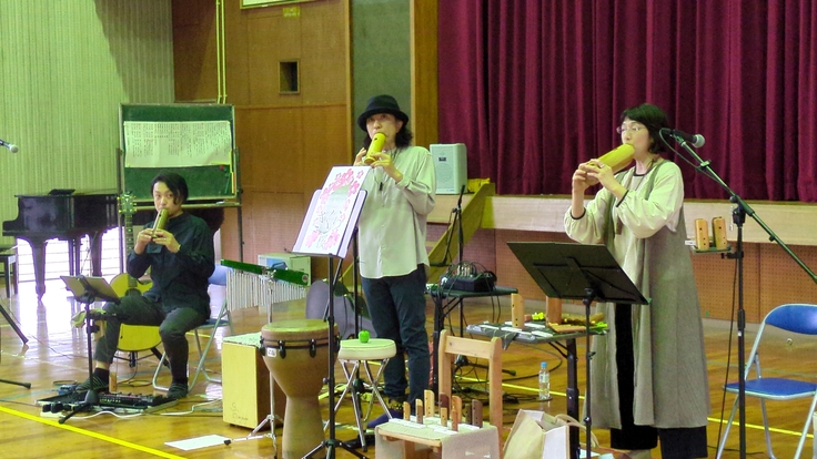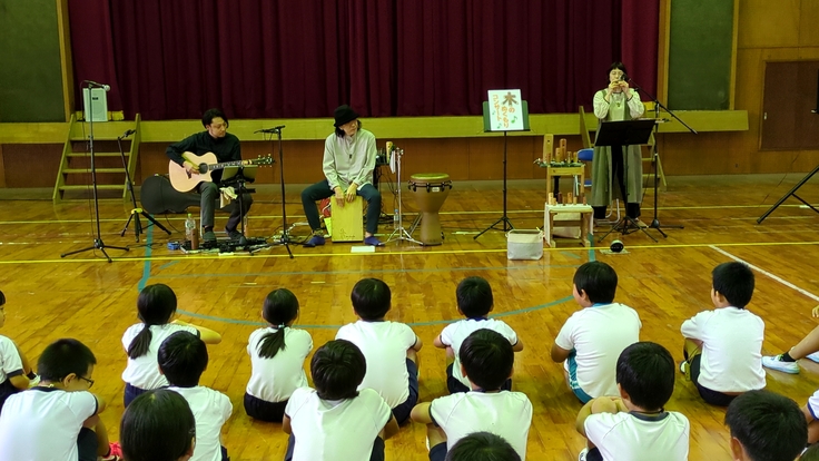 10月24日(火)は南種子町立茎南小学校で全校児童30名の子どもたちが鹿児島市を拠点に活動しているココムーンペリによる「木のぬくもりコンサート」を鑑賞しました。