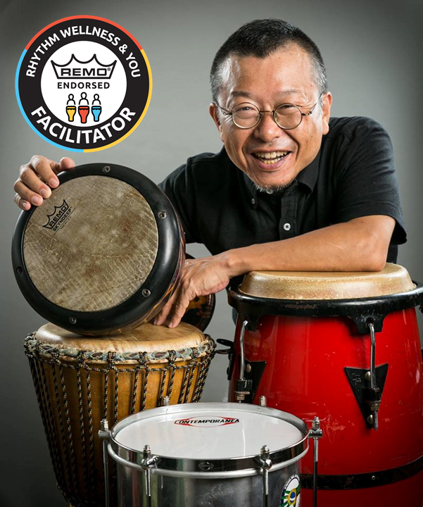 みんなで輪(サークル)になって自由に世界の太鼓(ドラム)を即興演奏して楽しむ「ドラムサークル」をファシリテートする全国的な第一人者。