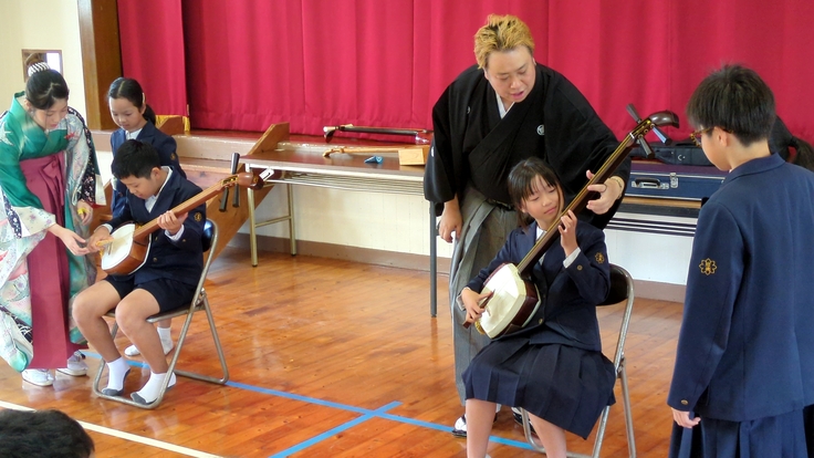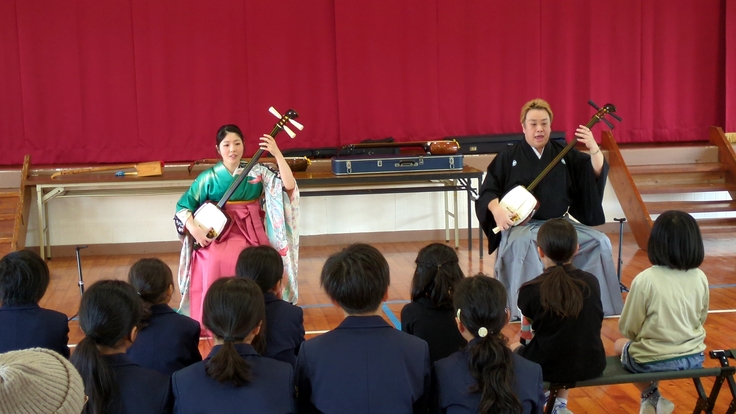 本日は、10月末に曽於市立高岡小学校で行われた当法人のかんげき株主基金(一口500円でご寄付いただいている学校鑑賞会支援基金)による公演にご協力いただいた津軽三味線石井流・石井秀岱さんからのメッセージをご紹介させていただきます。