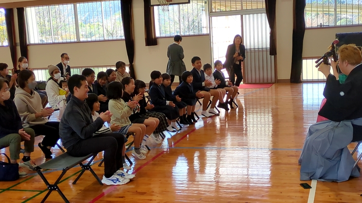 高岡小学校は今年度で閉校してしまうのですが、その記念にと同じ曽於市内の岩南小学校の児童も参加しての実演と体験。とても素敵な時間でした。(石井さんのメッセージの後で当日の写真をご覧いただけます。)