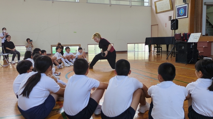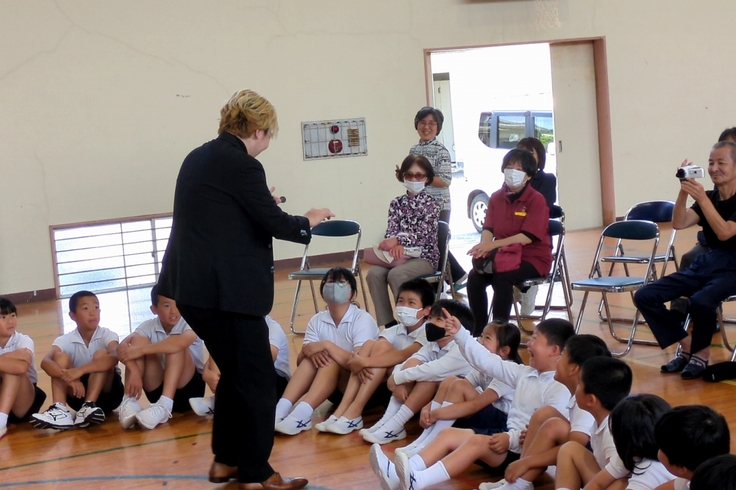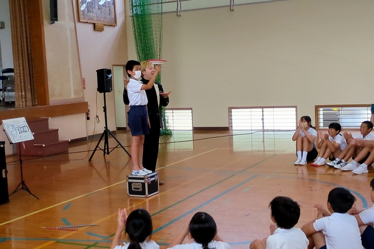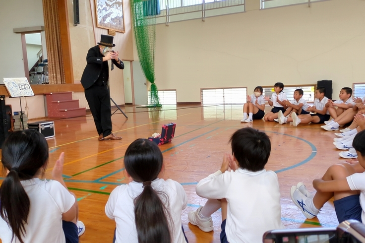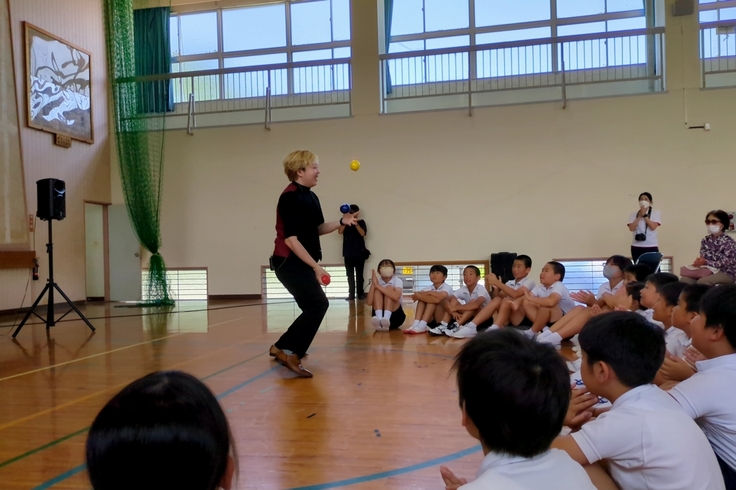6月5日(水)は今年度の4校目の支援事業、南さつま市立小湊小学校でJACKプロジェクトのK@ITOさんによるパフォーマンスショーとワークショップが開催されました。