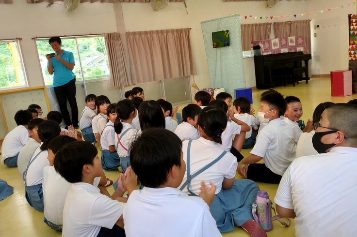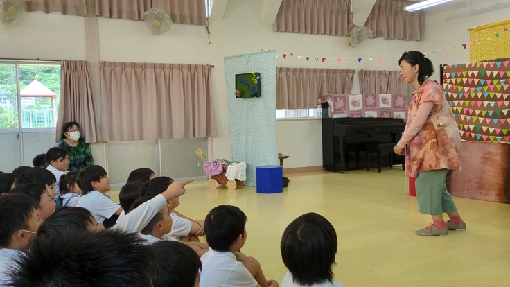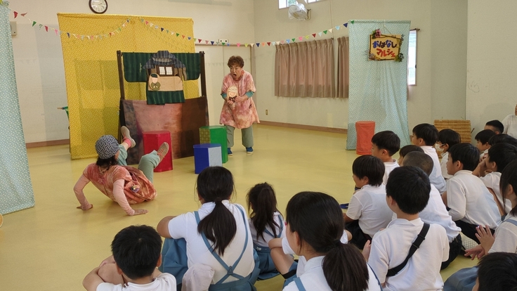 7月2日(火)にいちき串木野市立旭小学校で舞台劇「おはなしマルシェがやってきた!」の公演がおこなわれました。