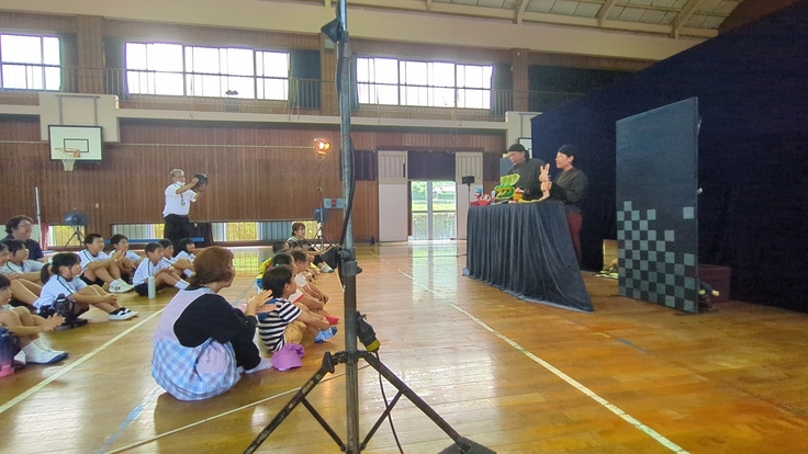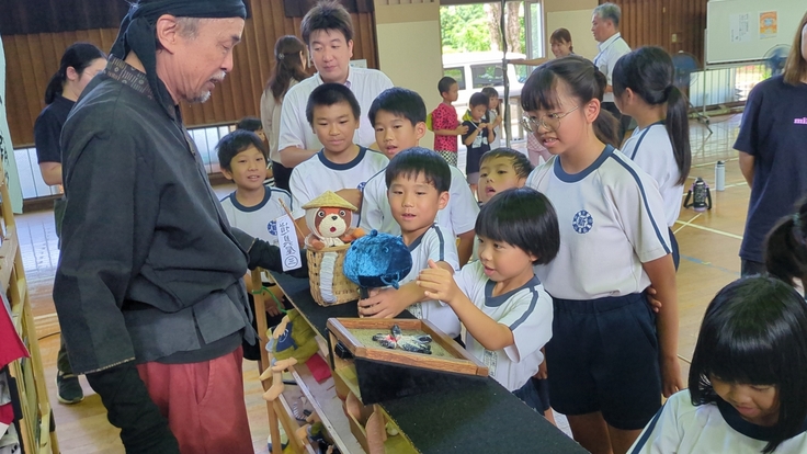7月8日(月)は垂水市立新城小学校での人形劇団京芸「まんてんげきじょう」公演でした。