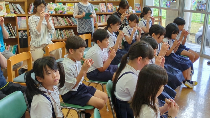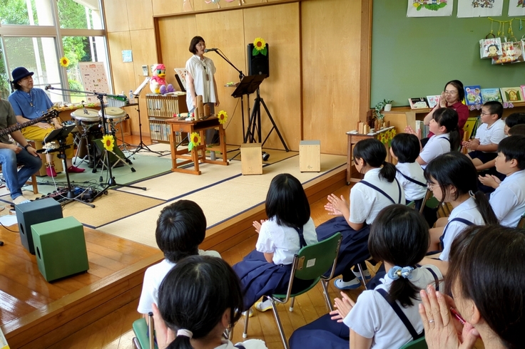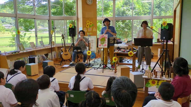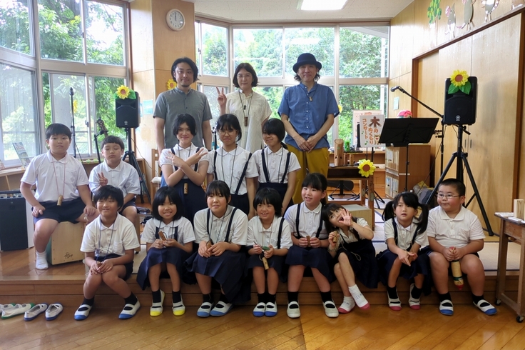 7月9日(火)は全校児童13名の南九州市立大丸小学校でココムーンペリの皆さんによる「木のぬくもりコンサート」でした。