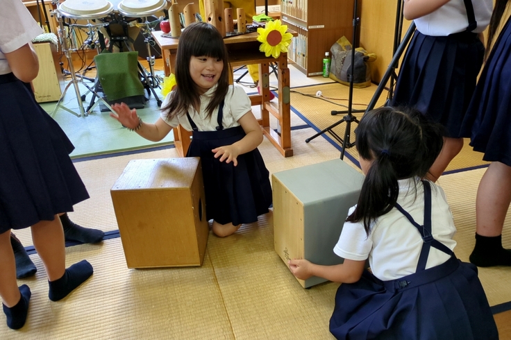「カホン」や「コカリナ」の体験をはさみながら進むコンサート。
