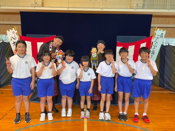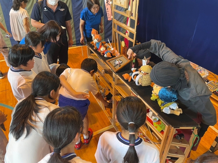 7月9日(火)は支援事業がもう1校、錦江町立大原小学校で人形劇団京芸の「まんてんげきじょう」の公演がありました。