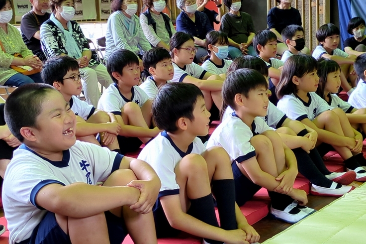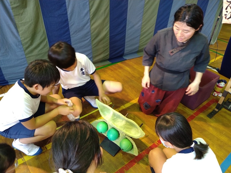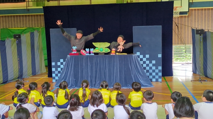本日は7月10日(水)に行われた伊佐市立牛尾小学校の人形劇団京芸「まんぷくげきじょう」のご報告です。