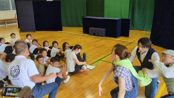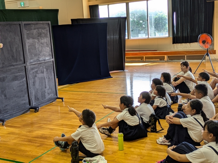 実はこの日は当初予定に無かった電気関係の工事が入ったのですが、業者の方々が「せっかくの機会だから」と上演中は音が出る作業を中止してくだり、子どもたちは舞台を集中して観ることができました。