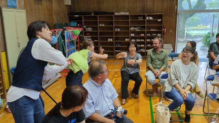 台風が近づき、時折強い雨が降りましたが上演中は影響もなく、近くの施設のみなさんや地域のみなさんも交えて賑やかな客席となりました。