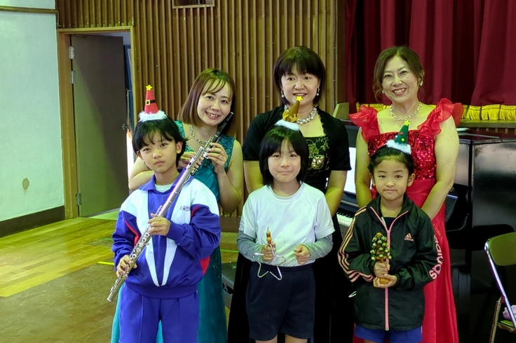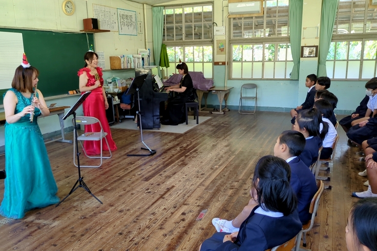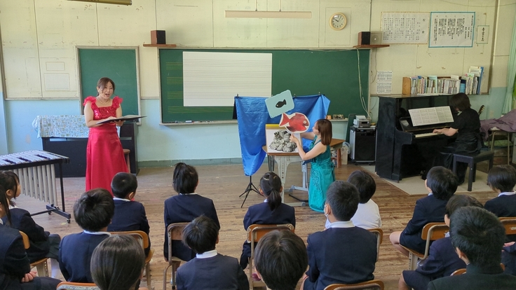 12月4日(水)、5日(木)の二日間加計呂麻島にある西阿室小学校と伊子茂小学校で、鹿屋市を拠点に活動をされている音YUZURIの皆さんによる音楽鑑賞会を実施いたしました。