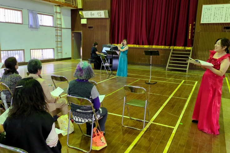 そして、学校がご案内した時間より20分前には地域のみなさんがお揃いになり、音YUZURIのみなさんがその方々へ一曲プレゼントしてくださいました。