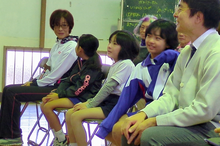 西阿室小学校は全校児童3名の小さな学校ですが、地域の方々がたくさん集まってくださり、先生方も合わせて30名近くの客席となりました。