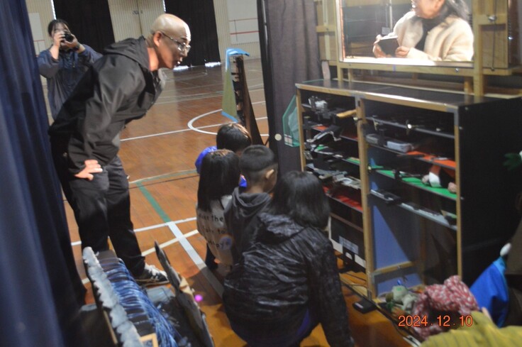 鑑賞がおわると、グループに分かれて舞台裏をみせてもらいました。どのグループも第一声が「すげ〜!」でした。