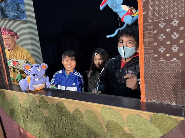 人形劇を楽しんだあと、みんなが人形を操作して遊ぶことができ、少人数ならではの公演でした。