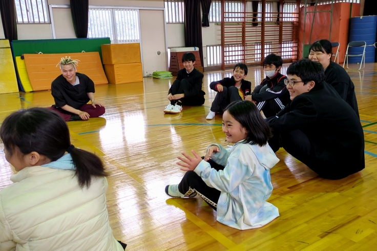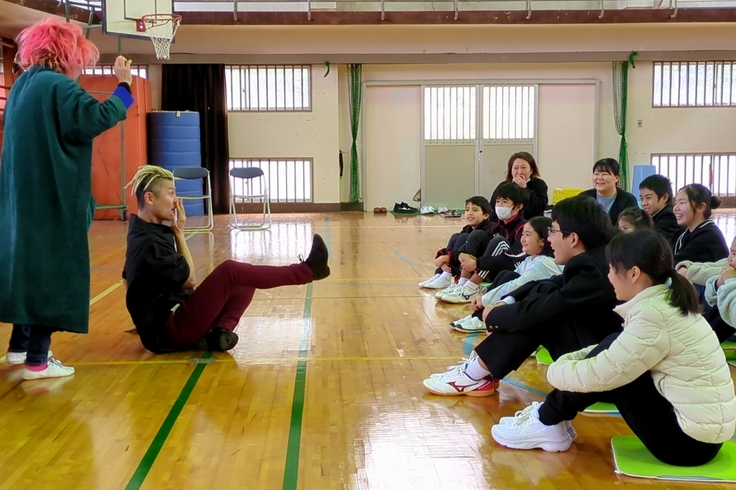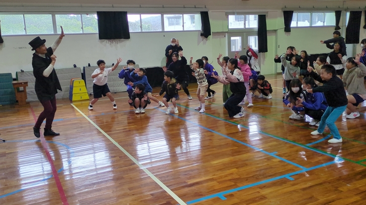 2月6日(木)、7日(金)の二日間、奄美大島の宇検村にある二つの小中学校、名柄小中学校と阿室小中学校で、ラストラーダカンパニーのクラウンChan'gさんとクラウンLONTOさんによるパントマイム体験を実施いたしました。