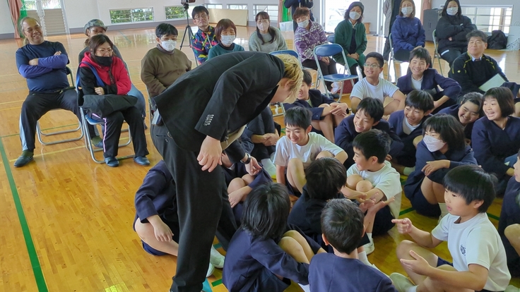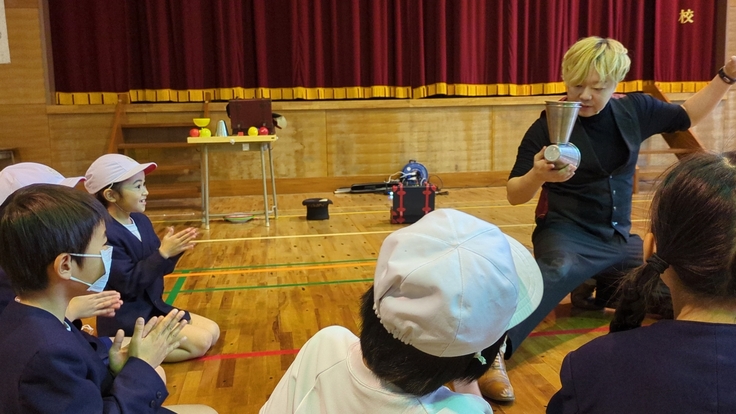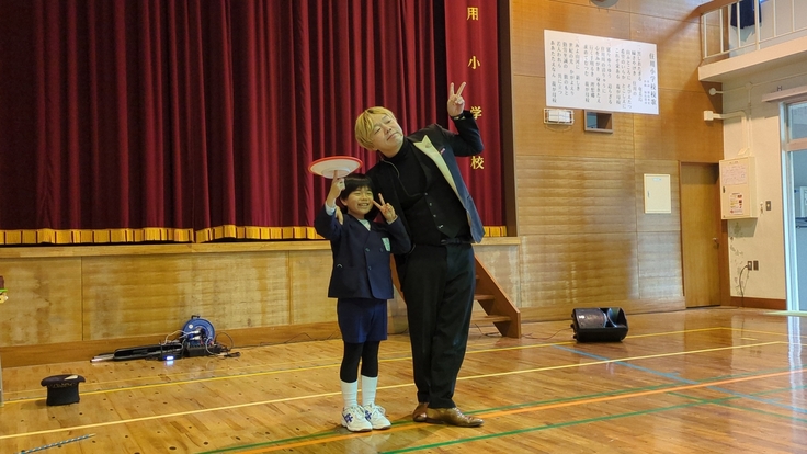 本プロジェクト、「【第4弾】鹿児島の児童50人以下の小学校に文化芸術体験を届けたい!」の最終実施分が2月19日(水)20日(木)の二日間、奄美市立節田小学校と奄美市立住用小学校でJACKプロジェクトのK@ITOさんによるパフォマンス・ショーとジャグリングワークショップが実施されました。