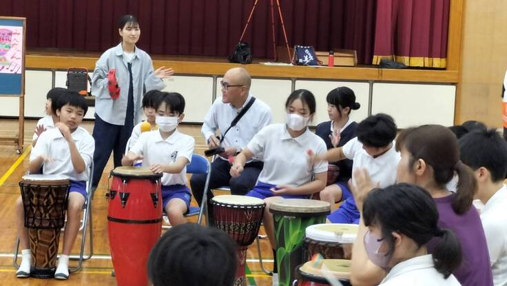 今年度支援事業スタート!霧島市立霧島小学校でドラムサークルを実施しました!
