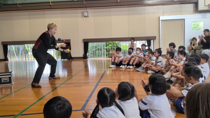 教頭先生が前任校でK@ITOさんのパフォーマンスに出会われていて、今日の体験授業を保護者の皆さんに事前に宣伝をしてくださっていたということで、平日にも関わらず多くのお母様方も参加されました。