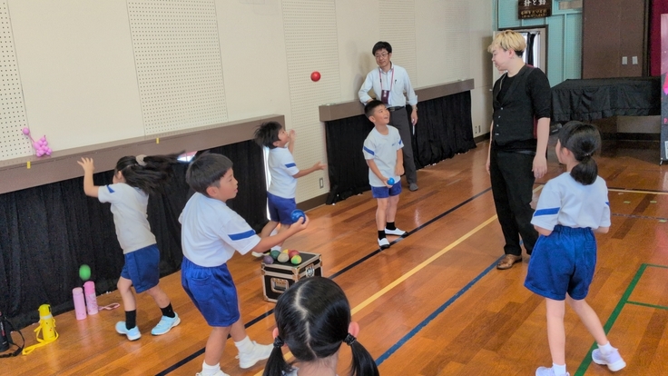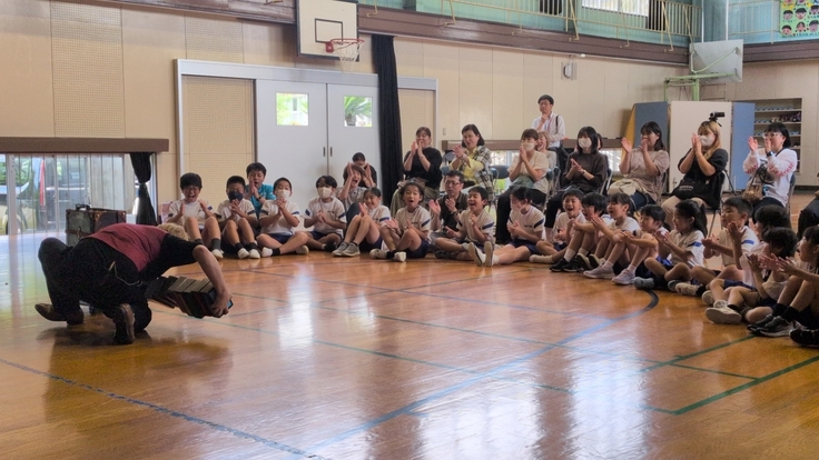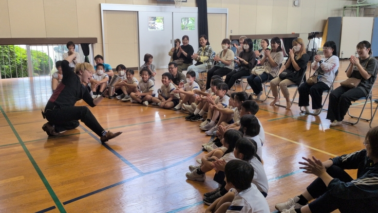 今年度のクラウドファンディングによる小規模小学校支援事業2校目は6月6日(金)、全校児童20名の薩摩川内市立峰山小学校でJACKプロジェクトのK@ITOさんによる「パフォーマンスショー&」が行われました。