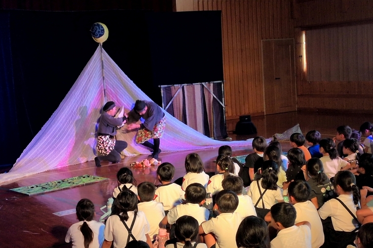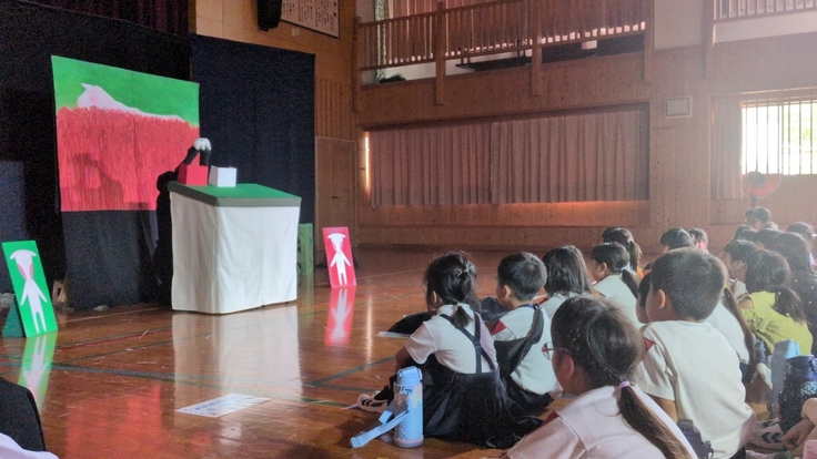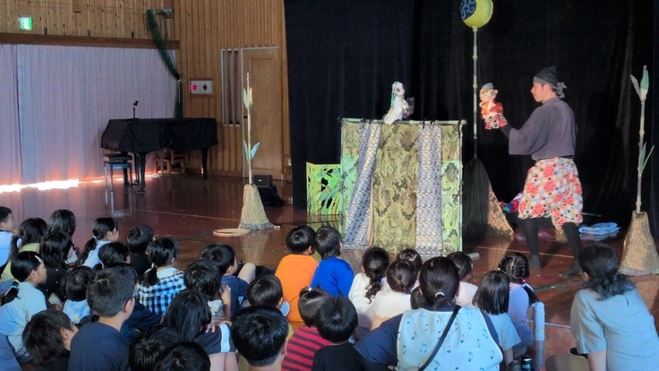 6月27日(金)に今年度支援事業の5校目として、曽於市立笠木小学校でパペットシアターゆめみトランクさんによる「かぐやひめ/並演 やぎのおはなし」が開催されました。