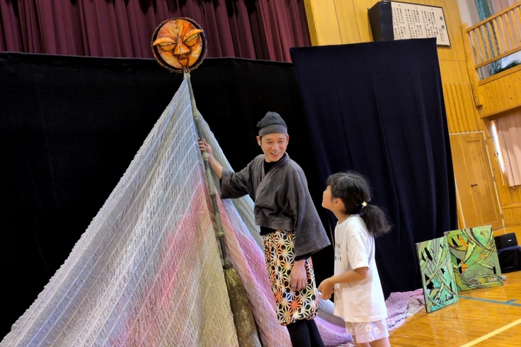 「かぐや姫」では、「殿、日本一!」というセリフに、低学年の子が拍手をしたところから人形(役者さん)とのやりとりが生まれ、そのやりとりで会場全体に拍手がひろがったり、殿の家来になって「はい!はい!」と答える子がいたりと、子どもたちはお話に参加しながら楽しんでいました。