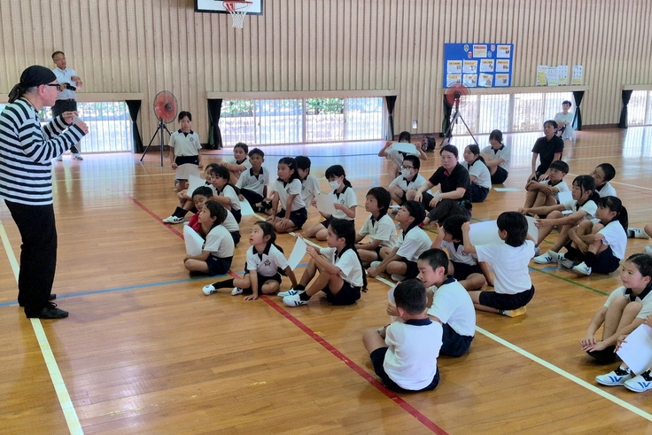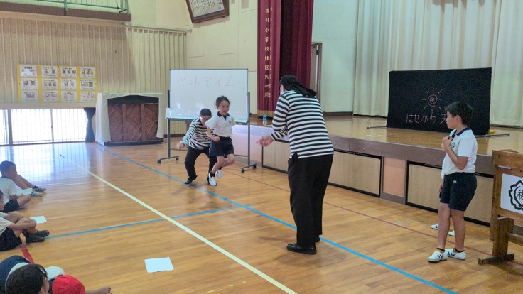 支援事業10校目、鹿屋市立祓川小学校でパントマイム体験のご報告です!