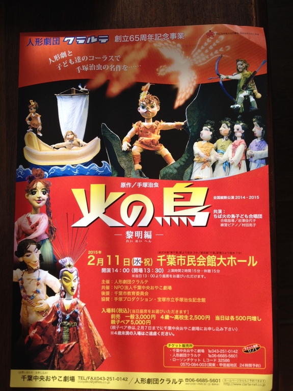 はじめまして!こんにちは。NPO千葉中央おやこ劇場の木下文子と申します。私たちは、年齢にあった「生」の舞台鑑賞活動、キャンプや科学教室などの社会体験・自然体験、乳幼児と保護者のためのリズム体操の3本柱で千葉市を中心に、親子で、異年齢の縦や横の関係で、地域の人とで、様々な関係の中でいろいろな体験をして、成長したり成長を見守ったりする活動をしています。そこでこのたび、大阪の人形劇団クラルテの大型人形劇を千葉中央おやこ劇場で共催することが決まりました!また「ちば火の鳥子ども合唱団」を結成し共演します。NPOの活動以外に様々な環境の子どもたちと接する機会がたくさんある中で、「自分が体験できないこと」の擬似体験や、そこからいろいろな考えや思いがでてくる観劇活動を子どもたちに届けたいと思っていたので、まさに千載一遇のチャンスです!