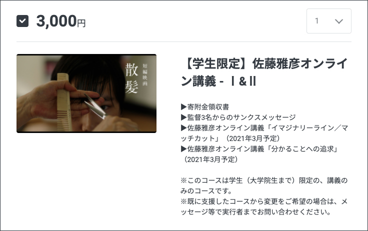 学生(大学院生まで)の方々を対象として、「佐藤雅彦オンライン講義 - Ⅰ&Ⅱ」を3,000円で受講できる新しいリターンを新設しました。