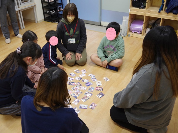 今回初めて発達障害児童のデイサービスに伺いました。児童の皆さんが楽しくかるた遊びをしながらも子どもの権利が存在することを知ってくれて嬉しく思いました。また、今回の訪問を通して私達も学ぶことが多く、とても有意義な時間になりました。