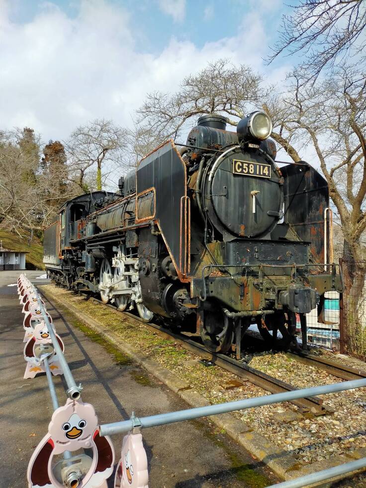 坂を上りきると、錆びついたSLがいました。観光マップにも書かれていませんでした。